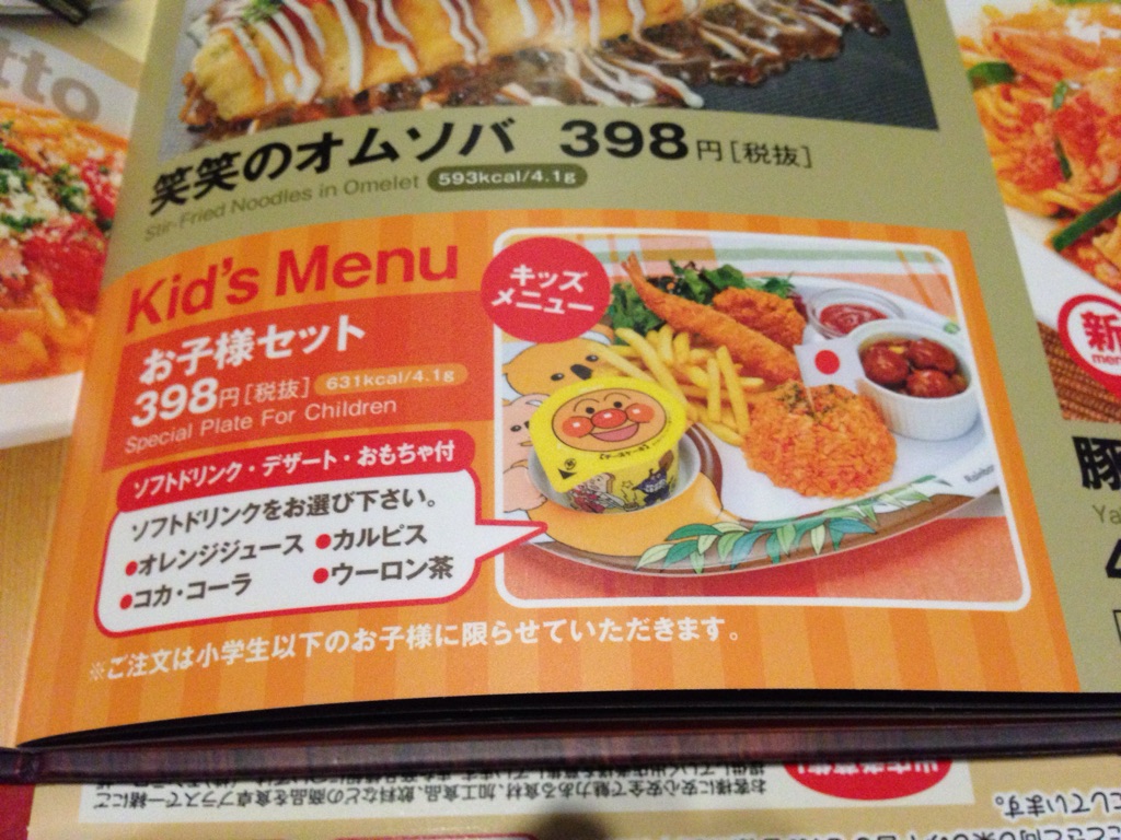 お子様セットは揚げ物2品とポテト、ケチャップライス、野菜、飲み物にデザート・おもちゃ付です。(写真を参考にしてください)