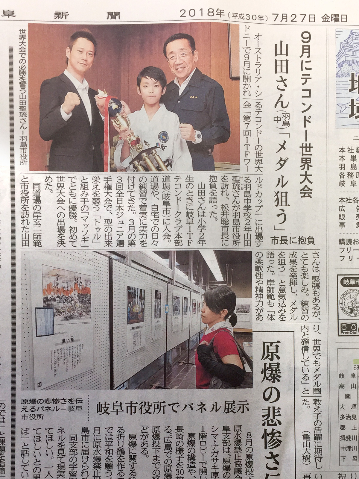 岐阜本部道場所属の八田銀琉さんと渡辺萌生さんが来月フィンランドで開催される世界選手権への出場に際して、大垣市長に表敬訪問に伺いました。