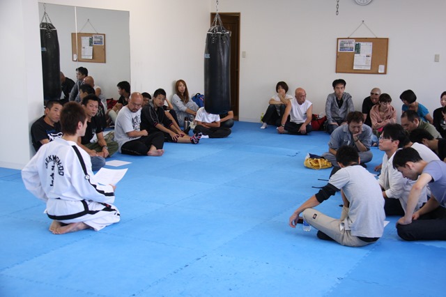 今後の道場の運営方針と教材DVDの案内をしたあと、マッソギの動きや構え、考え方の基本のレクチャーがありました。